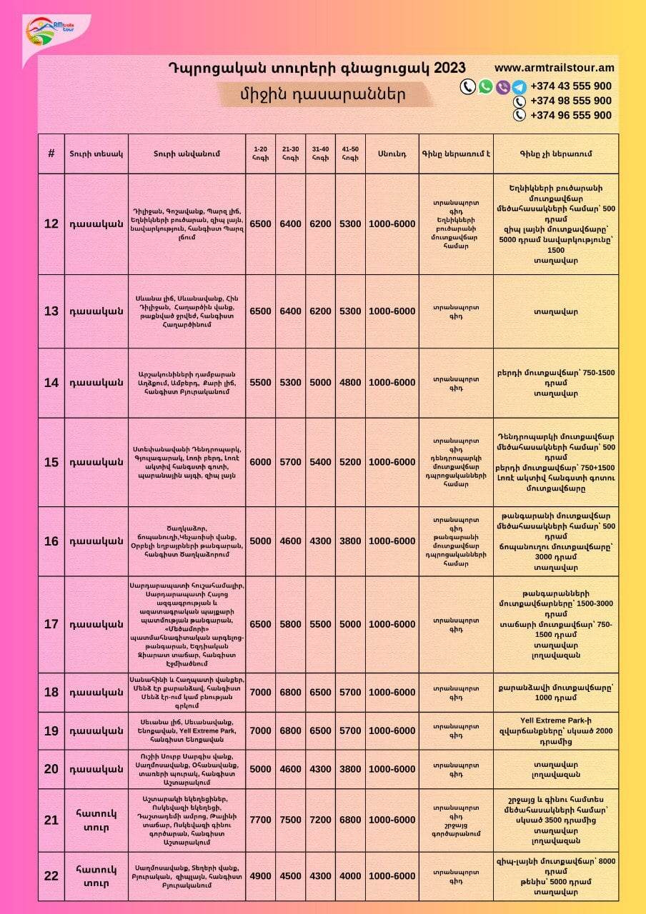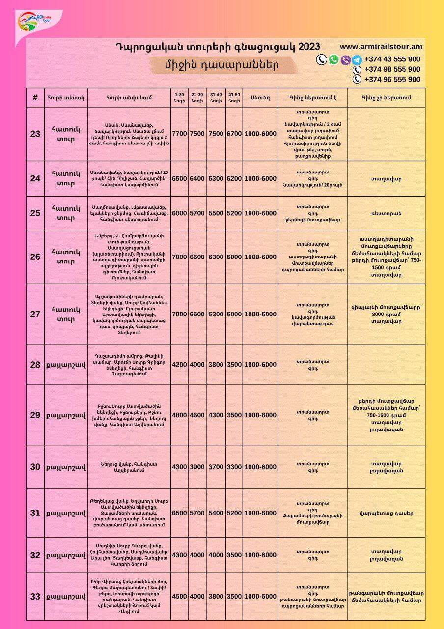 Դպրոցական էքսկուրսիաներ միջին դպրոց